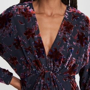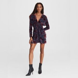 Rag & Bone NWT Eloise Mini Dress Purple Size 00 Burnout Velvet Long Sleeve Silk
