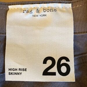 Rag & Bone NWT high rise skinny 5 pocket black corduroy jean. Ankle length, button & zip fly closure, belt loops and 5 pocket styling.
