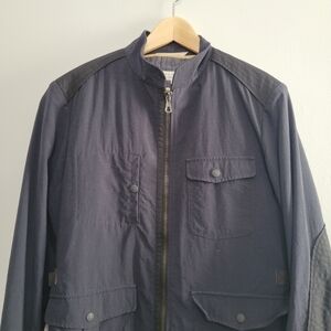 Rag & Boke Navy Utility jacket. Several exterior pockets. Great condition! Removeable interior lining. Patchwork and strap detail.
