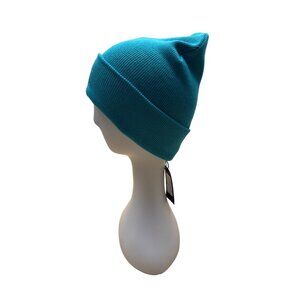This knit beanie offers warmth and style with its vibrant aqua blue hue. Its versatile design suits various casual looks effortlessly.