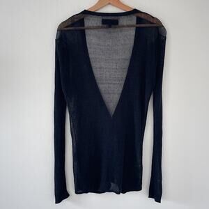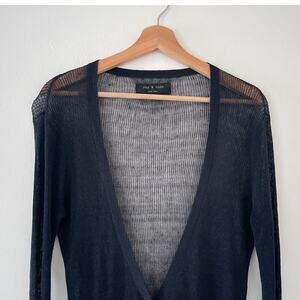 Rag & Bone New York Black Knit Linen Fitted Deep V Cardigan Sz S Minimal Goth