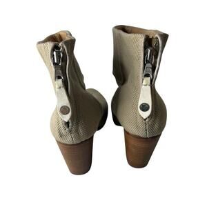 Rag and Bone Newbury Canvas Ankle Boot in Camel. Size 39 (US 9). Features almond toe, block heel, canvas upper, and back zipper closure. Excellent pre-owned condition.
