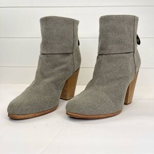 Rag & Bone Newbury Italian Canvas Stonewall Ankle Boot 7.5 Chunky Stacked Heel