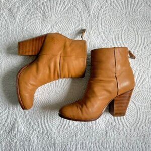 Rag & Bone Newbury Tan Leather Booties 3.5” Heel Classic Ankle Boots
