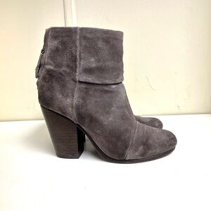 Rag & Bone Newbury Women's Suede Ankle Boots Stacked Heel Gray Bootie boho 6.5M