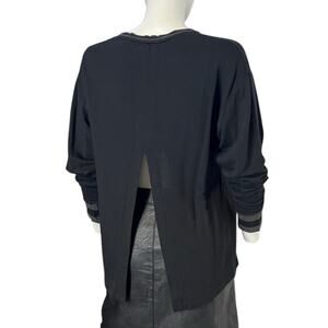 Rag & Bone Nikki Split Back Black Crewneck Modal Cotton Sweater Size XS