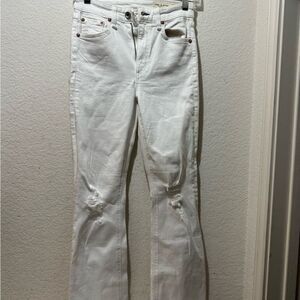 Rag & Bone Nina High Rise Ankle Flare Jeans in Summer White with Holes Size 24