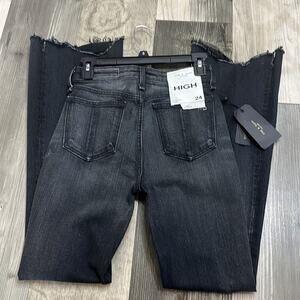 Brand new rag & bone Nina High Rise Shark Bite Hem Flare Denim Jeans Clean Onyx Size 24
