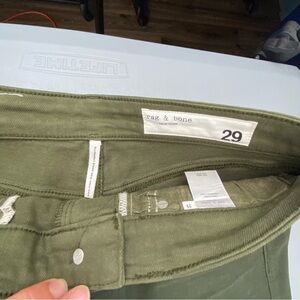 Rag & Bone Nina High-Rise Ankle Cigarette Skinny - Coated Olive Wms sz 29