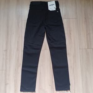 Brand new with tags Rag & Bone Nina High-Rise Slim Cigarette Jeans in size 24, featuring a sleek black wash with a stylish frayed ankle hem. These clean jeans from my personal closet offer a flattering high-rise fit and slim cigarette leg, crafted from mid-weight stretchy denim for all-day comfort.