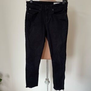 Rag & Bone No Fade Black Cate Mid-Rise Raw Hem Skinny Jeans EUC Size 26