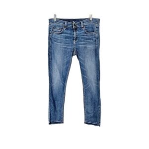 Rag & Bone Dre Capris in Livingston blue wash. Cropped style with open raw hem. Very good condition.