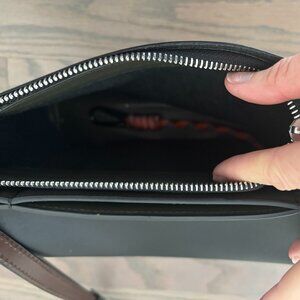 Unlined construction, padded phone compartment, branded logo carabineer attachment with fleck cording