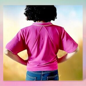 Rag & Bone polo shirt made of a soft towel-like-fleece-like material. It features a white contrasting trim on the collar. The style is described as fitted, with short sleeves and a cropped hem.