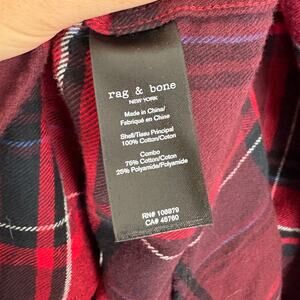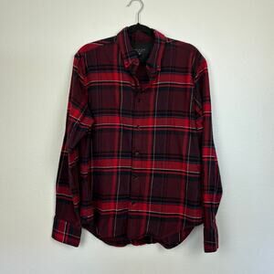 Rag & Bone Red Button Down Cotton Blend Classic Flannel Large
