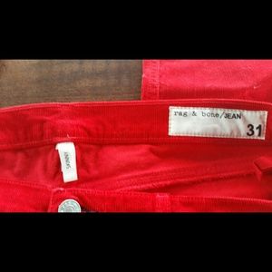 These Rag&Bone red cords are absolutely stunning. They have NEVER been worn. Unfortunately, before I could wear them, I got very sick and lost 60 lbs, so they don't fit. Otherwise I'd never let them go - lol. Would be amazing with a black fitted sweater & black booties or Dr. Martens. I'm jealous of whoever gets these.