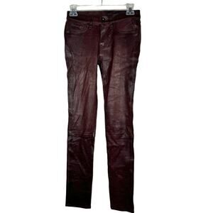 Rag & Bone Red Dark Burgundy Mid Rise Lamb Leather Skinny Pants 25 NWT