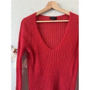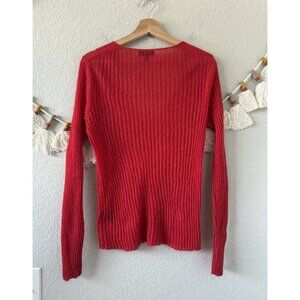 Rag & Bone Red Mohair Wool Blend Ribbed Knit V-neck Long Sleeve Top Basics S