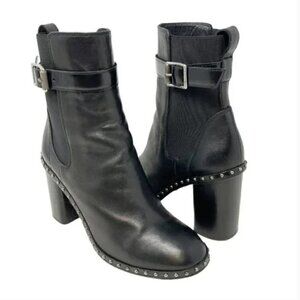 Rag & Bone Romi Black Lamb Leather Studded Ankle Strap Boots - Size 6.5