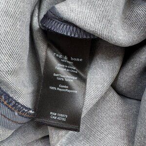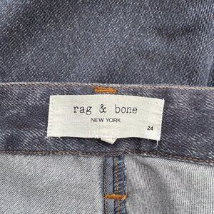 Rag & Bone Rosa Miramar liquid straight-leg pants in a dark wash blue printed denim look, made from 100% Tencel lyocell with a slim straight silhouette. In a size 24, (waist: 13.5 in, inseam: 27 in), MSRP $275