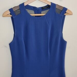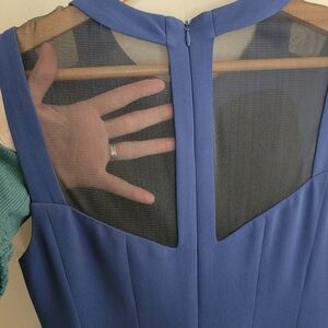 Stunning & sexy fit & flare sleeveless cocktail dress in navy blue. Mesh detail on shoulders and upper back.