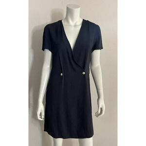 Rag & Bone S Dress Black Short V Neck Single Double Breasted Cap Sleeve