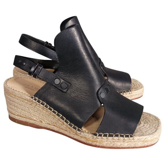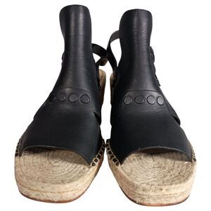 Rag & Bone Sandals 8.5 Womens Black Leather Espadrille Wedge Mid Casual Toe