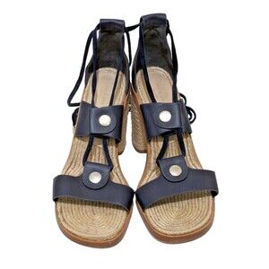 Rag & Bone Sandals Espadrille EU 39.5 US 9.5 Blue Leather 4" Block Heel Nice