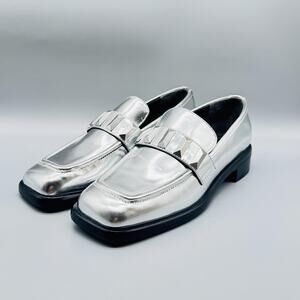Rag & Bone Shoes Women 9 Silver Metallic Loafer Square Toe Slip On Comfort Dress