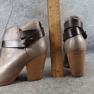Used Rag & Bone Shoes Womens 35 Bootie Harrow Stacked Heel Cap Toe Leather Strap Gray