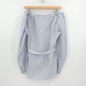 Rag & Bone Sierra Stripe Top Off Shoulder Tie Waist Blouse Blue White Large
