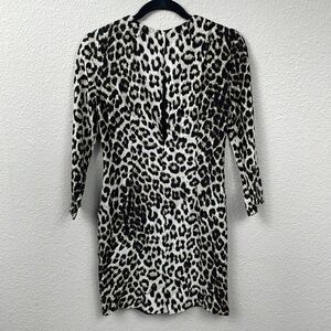 Rag & Bone Silk Leopard Mini Shift Dress 3/4 Sleeve Keyhole Back Animal Sz 2