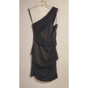 Rag & Bone Silk One Shoulder Tiered Layered Sheath Dress Womens Size 4 Black LBD