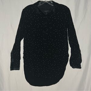 Rag & Bone Silk Quarter Button Down Long Sleeve Black Star Print Dress Shirt S