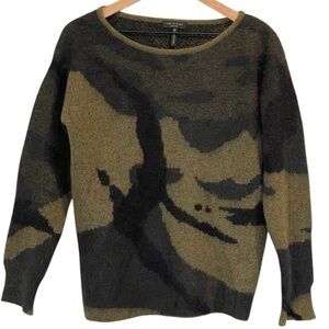 Rag & Bone Sinclair Mohair Blend Crew Neck Sweater, Army Green Camo Print, Small