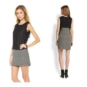 Rag & Bone Women's Black Fleet Dress 100% Silk Zig Zag w/ Sheer top Sz 2