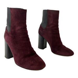 Rag & Bone Size 38 US 8 Agnes Burgundy Suede Block Heel Ankle Boot