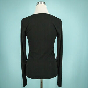 Rag & Bone Size Medium M Black Ribbed Knit V Neck Long Sleeve Fitted Polyester Spandex Blend Knit Top Blouse Shirt