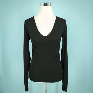 Rag & Bone Size Medium M Black Ribbed Knit V Neck Long Sleeve Fitted Knit Top