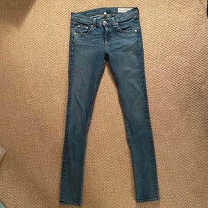 Very comfy mid-rise jeans! Barely worn. 29.5" inseam. "Sea Side" color