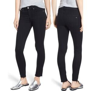 Rag & Bone black ankle skinny jeans with raw hems, size 27. Good preowned condition, modal, cotton, poly, spandex blend
