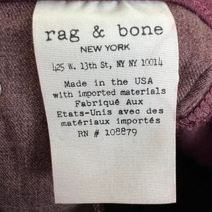 Rag & Bone mid-rise skinny stretch jeans in Port Wash (Burgundy color).  10 Ounce Turkish denim in overdyed port wash.