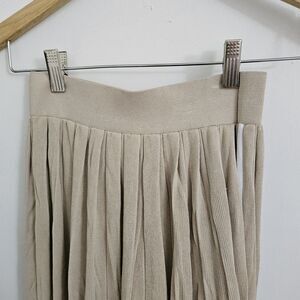 Rag & Bone Skirt Small Beige Peyton Warm Khaki Rib Knit Midi Pleated Stretch