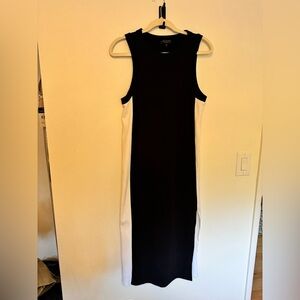 Rag & Bone Sleeveless Midi Dress Cotton Slit Colorblock Black White Small EUC