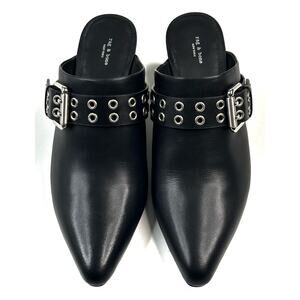 Rag & Bone Slip-On Spire Black Leather Grommet Mules Buckles Size 37 (US 7) New