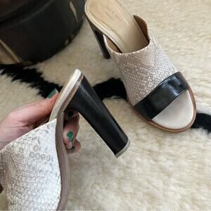 In preowned condition. Leather shoes with a slim block heel. Parts have been freshly dyed black by a cobbler .
