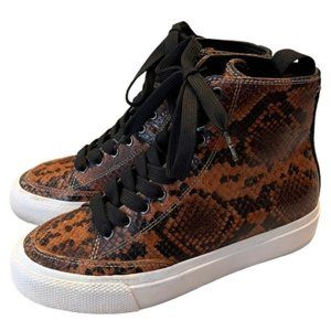Slither your way into style with these sneakers from Rag & Bone! Featuring a chic snakeskin design, they give the classic high top sneaker an edgy twist. Pair with skinny jeans and a leather jacket for a cute and casual look.