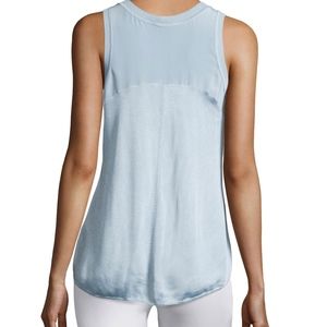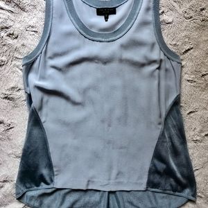 Really beautiful silk and knit combo top in size S - worn only once! Color is a light silvery blue. Looks great styled with a mix of athletic wear and/or dressy. So cute I might decide to keep it... reasonable offers welcome :)