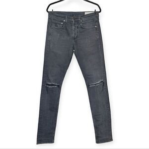 Rag & Bone Standard Issue Fit 1 Extra Slim Jeans Shelter w Holes Black Grey 29 x 34