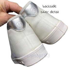 RAG & BONE STANDARD ISSUE HIGH TOPS SNEAKERS WHITE CANVAS LEATHER SILVER LACE UP TIES LACES WHITE SNEAKERS SIZE 41 SIZE 11